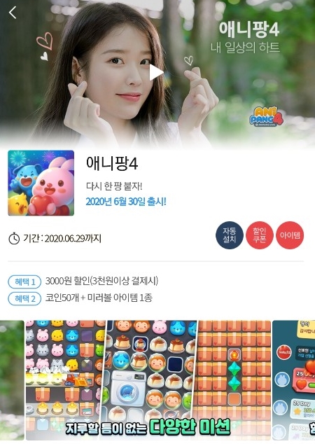 요즘 애니팡 4가 아이유를 내세운 광고를 하며