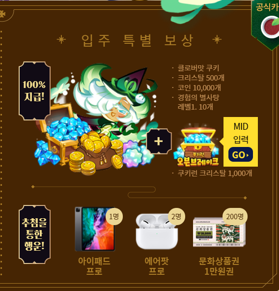 거기다 쿠키런 오븐브레이크 보상까지 준다고 하니..